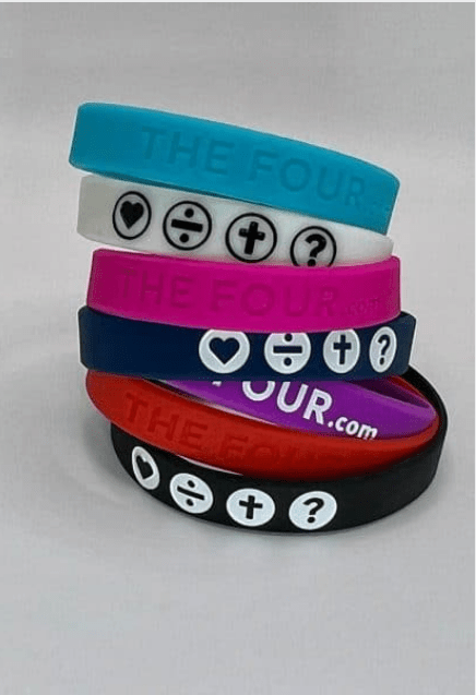 Another resource from Cru, the FOUR bracelets are wearable conversation starters. Each symbol represents an aspect of the story of the Gospel